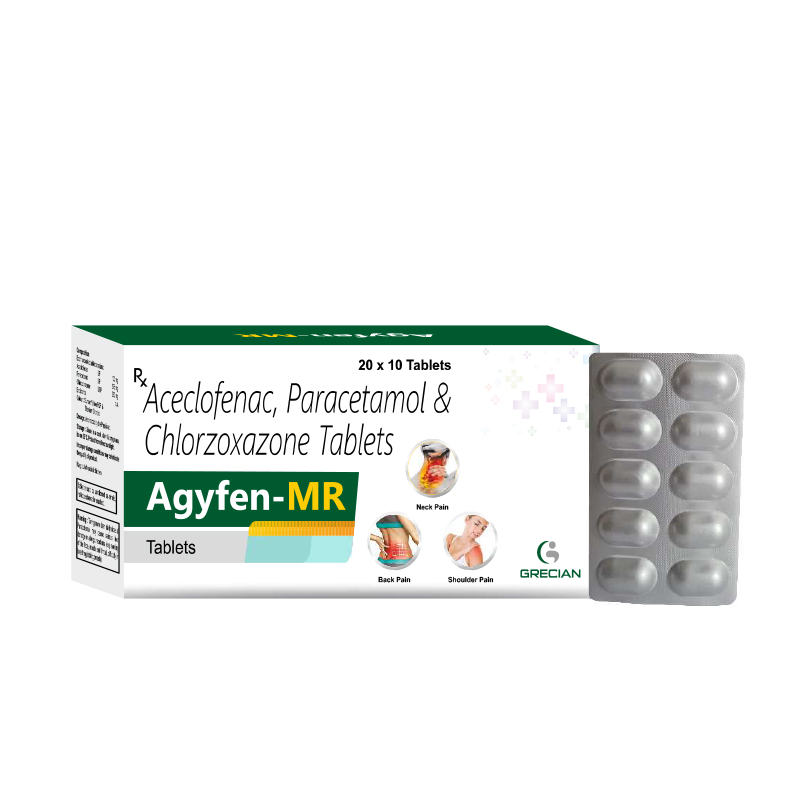 AGYFEN-MR is pain relieving medicines work by blocking the release of certain chemical messengers in the brain that cause pain and inflammation (redness and swelling). The muscle relaxant works on the centers in the brain and spinal cord to relieve muscle stiffness or spasm, thereby improving muscle movement.